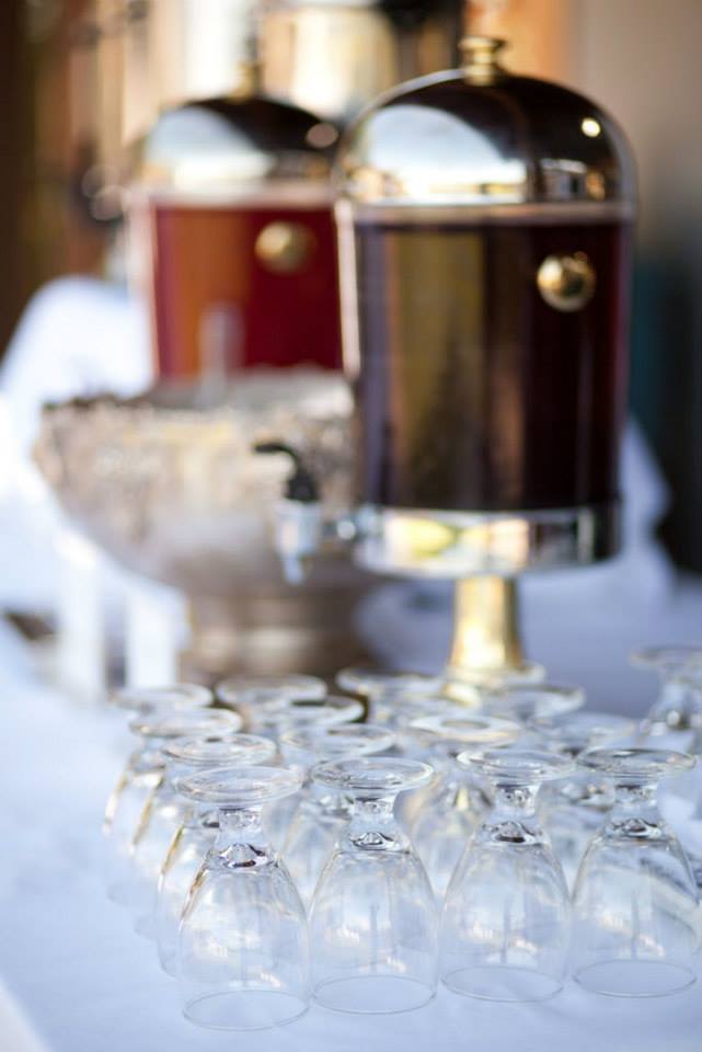Regular & Decaffeinated Coffee and Herbal Teas with condiments on the side, Water Dispenser, and Infused Mint Lemonade or Raspberry Iced Tea